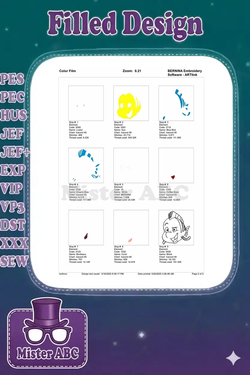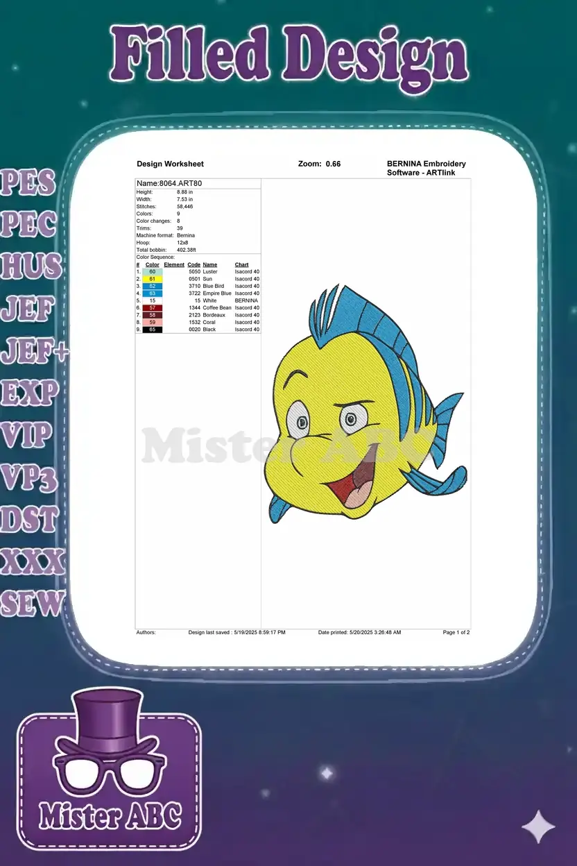 Capture the joy of the ocean with this vibrant Flounder embroidery design, perfect for Disney fans. A cheerful addition to any project!