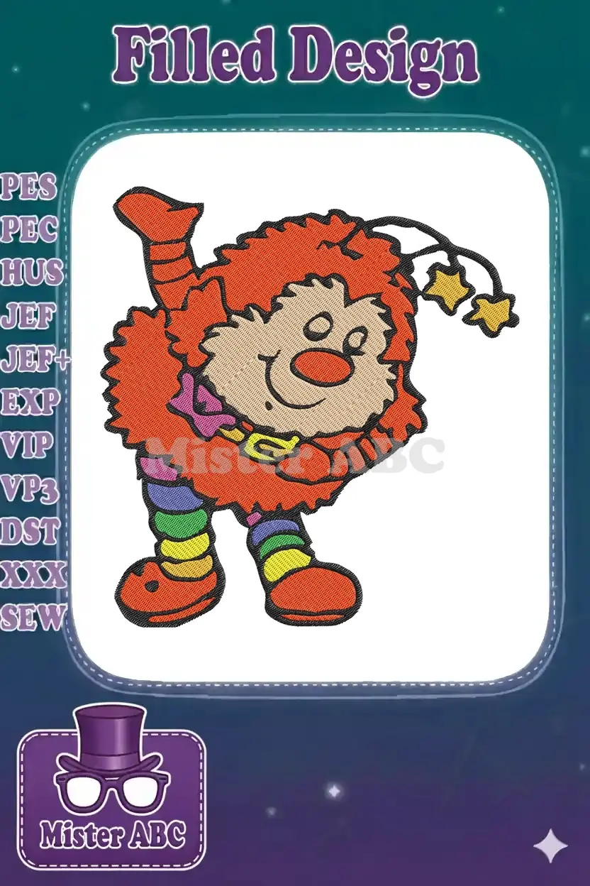 Happy fluffy orange character with rainbow legs and star embroidery designs