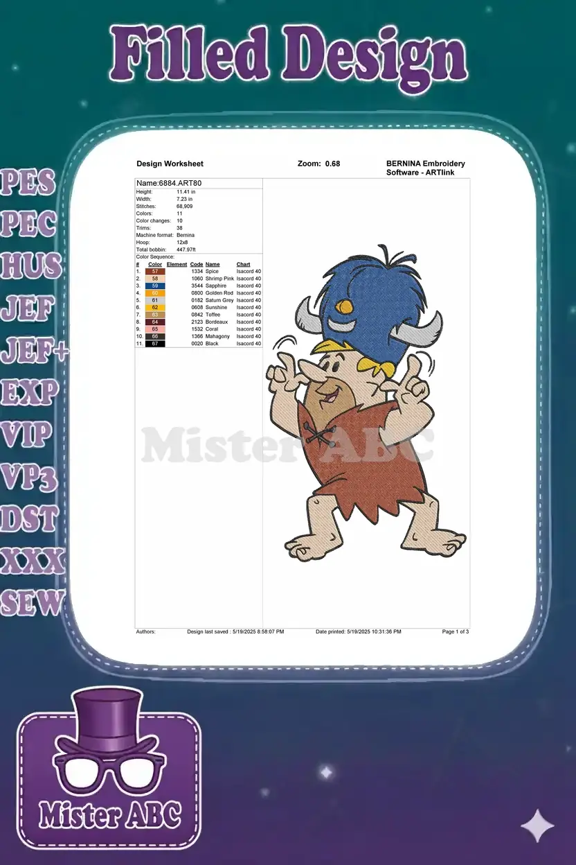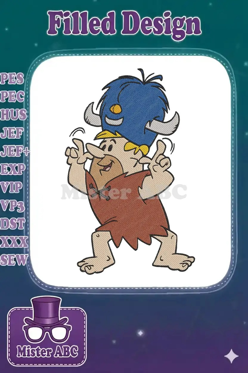 Happy Fred Flintstone Wearing Blue Monster Horned Hat Embroidery Designs