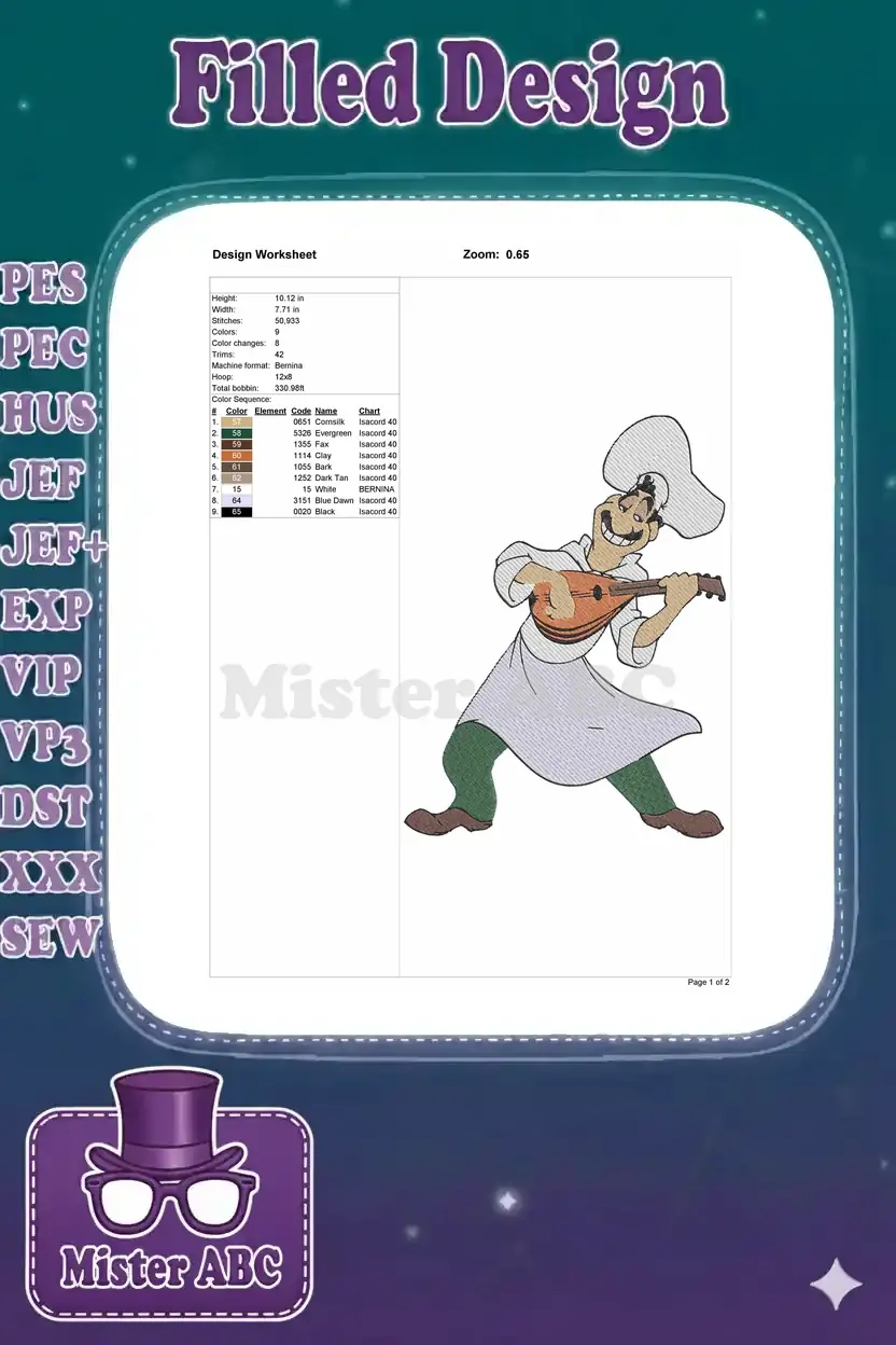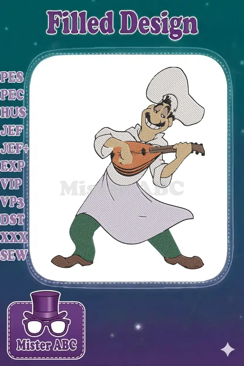Happy Italian Chef Playing Mandolin Music Embroidery Designs