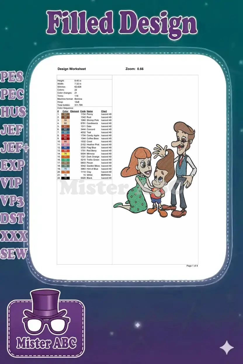Happy Jimmy Neutron family cartoon characters embroidery designs