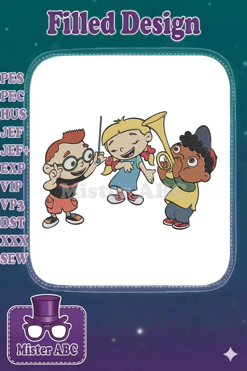 Happy Little Einsteins cartoon characters musical instrument embroidery designs