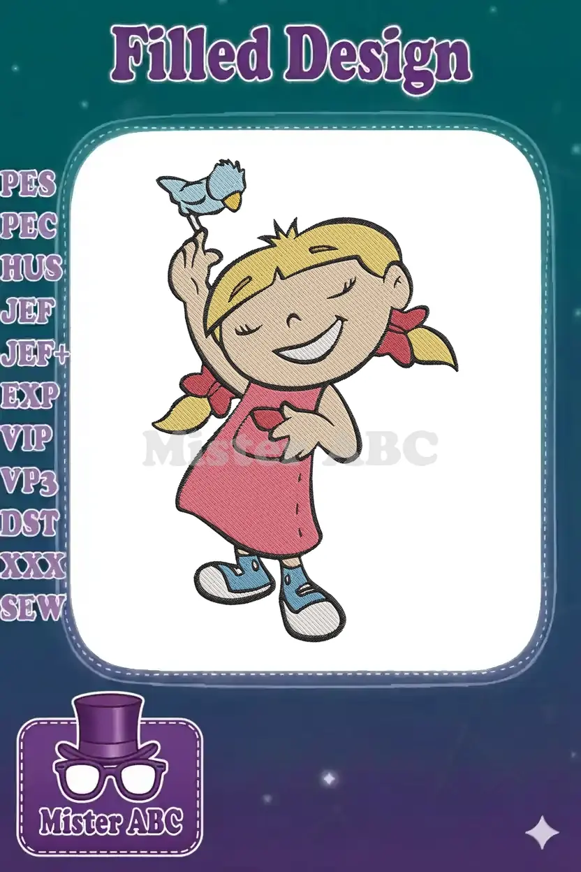 Happy Little Girl with Blue Bird Friendship Embroidery Designs