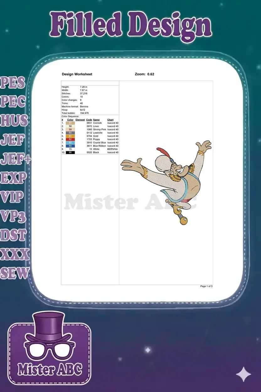 Happy Magical Genie from Aladdin with Arms Wide Embroidery Designs