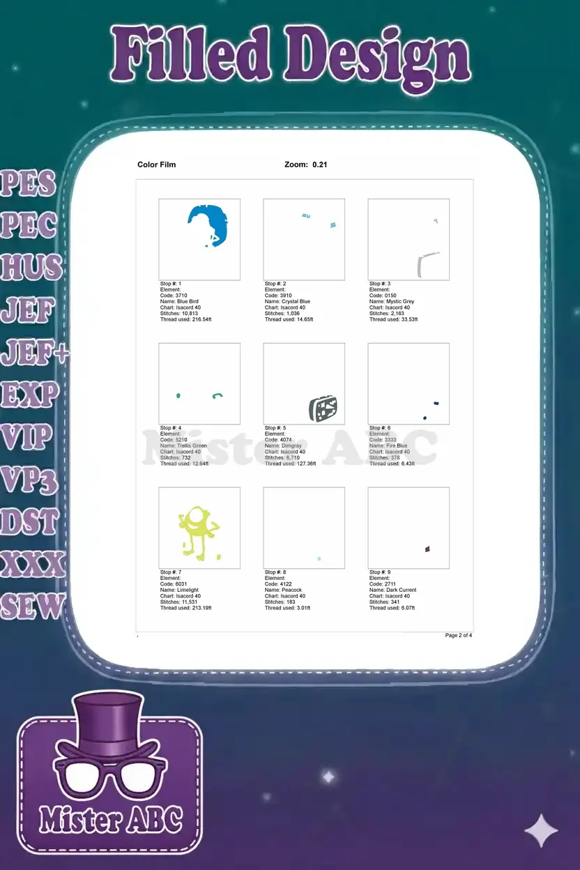 | Stitches | Colors | Thread Changes |