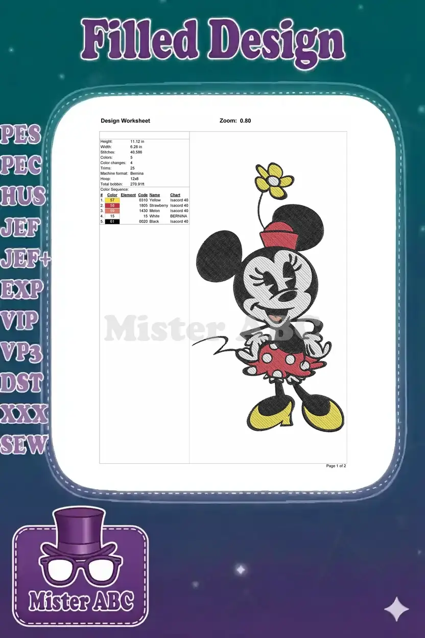 Happy Minnie Mouse classic red polka dot dress embroidery designs