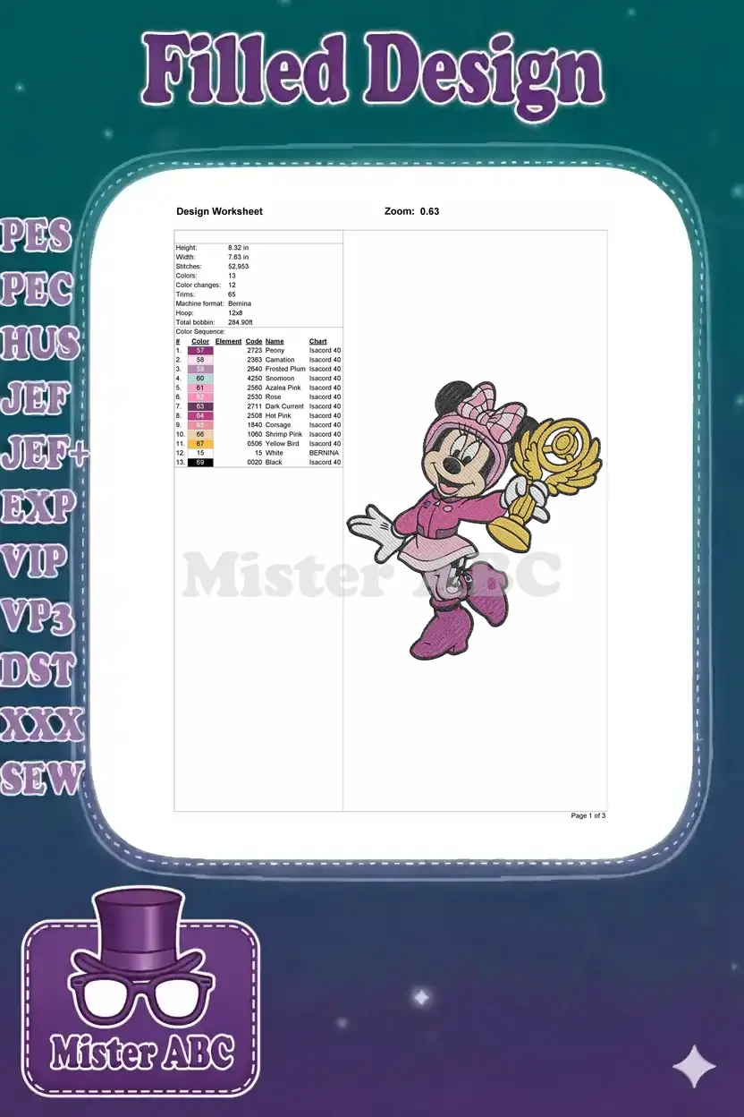 Happy Minnie Mouse Winter Champion Golden Trophy Embroidery Designs