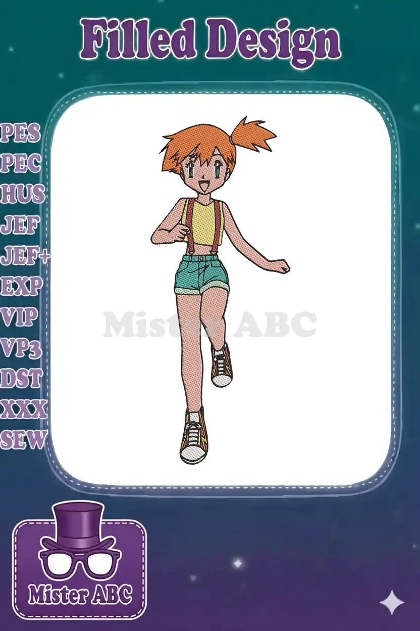 Happy Misty Pokémon anime girl embroidery designs with orange hair