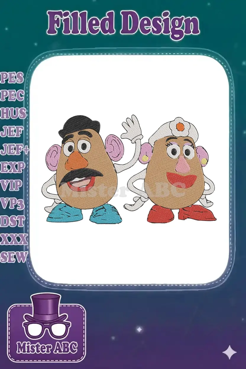 Happy Mr and Mrs Potato Head cartoon movie embroidery designs