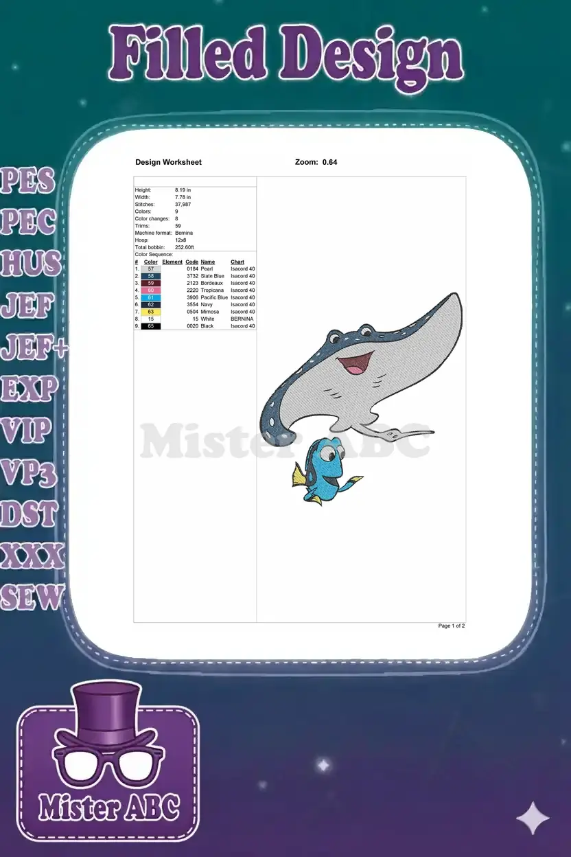 Happy Mr Ray and Dory Finding Nemo embroidery designs