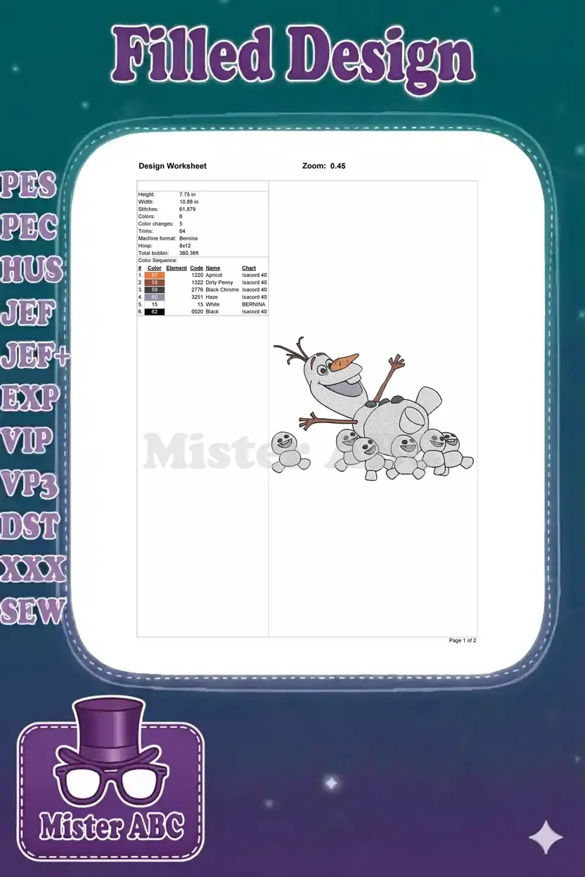 Happy Olaf and Cute Snowgies Winter Cartoon Embroidery Designs