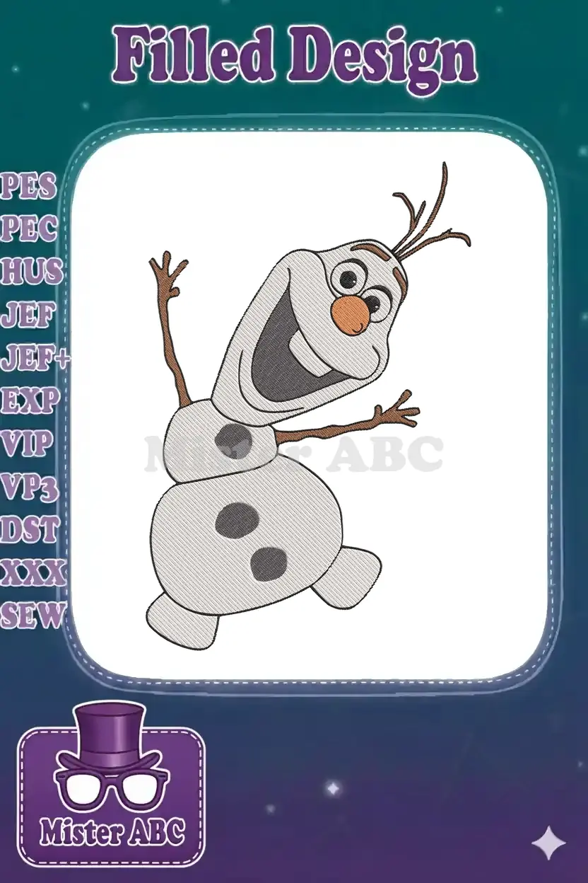 Bring joy to your projects with this delightful Olaf embroidery design! Perfect for fans of Frozen, capturing his cheerful spirit.