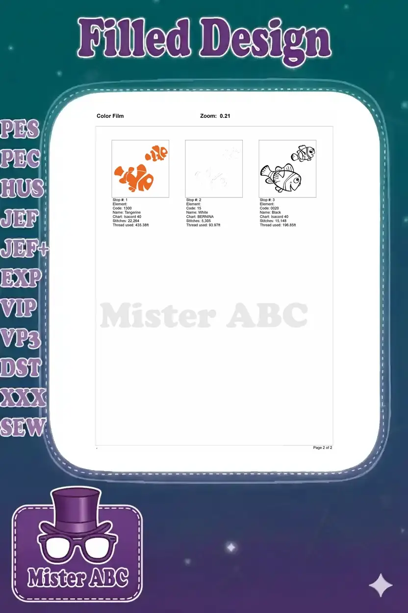 Dive into fun with this charming clownfish embroidery design, perfect for adding a splash of ocean joy to any project! Features two adorable fish, bringing a smile to all.