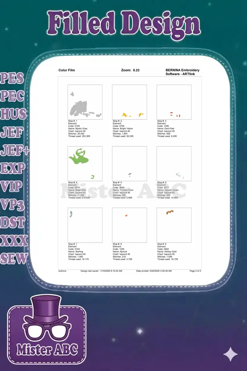| Stitches | Colors | Thread Changes |
