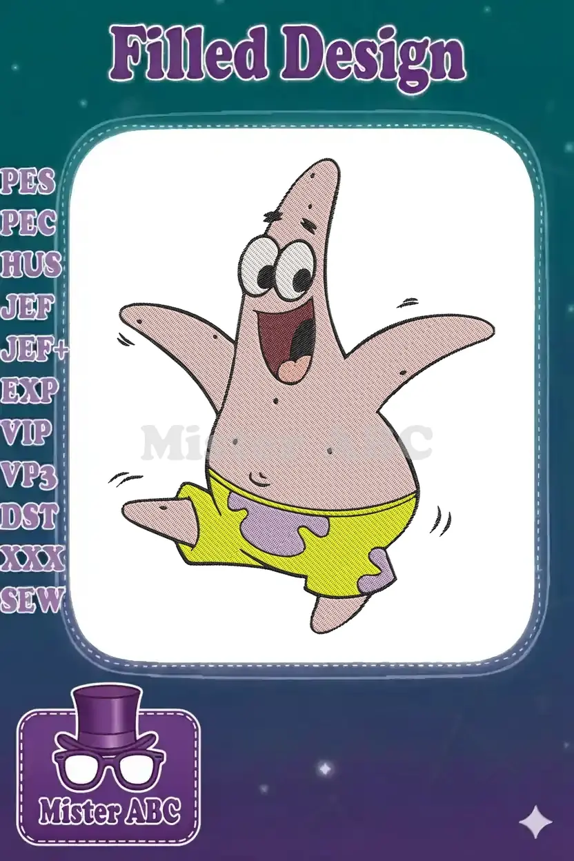 Happy Patrick Star jumping cartoon character embroidery designs