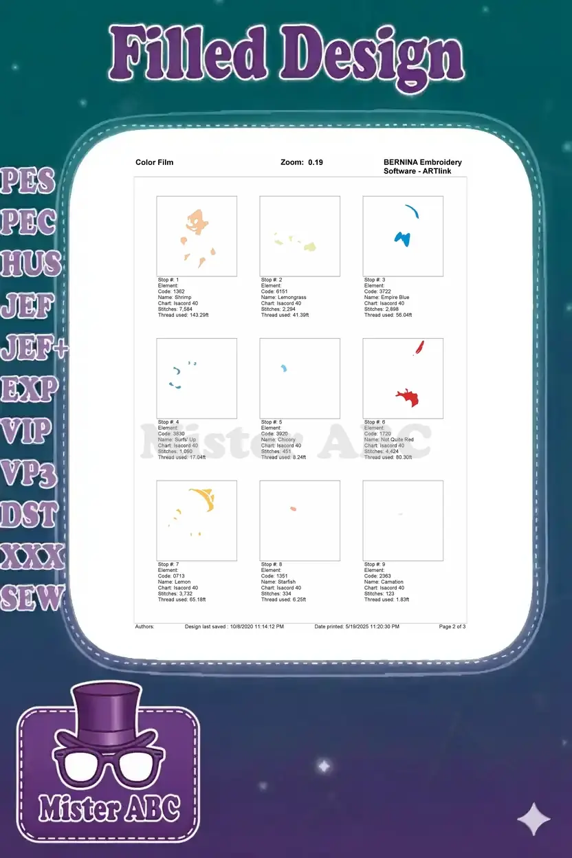 | Stitches | Colors | Thread Changes |
