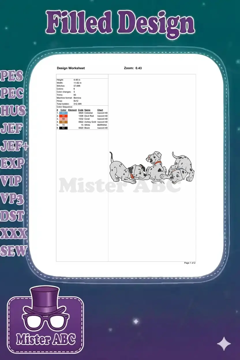 Happy Playful Spotted Dalmatian Puppies Fun Embroidery Designs