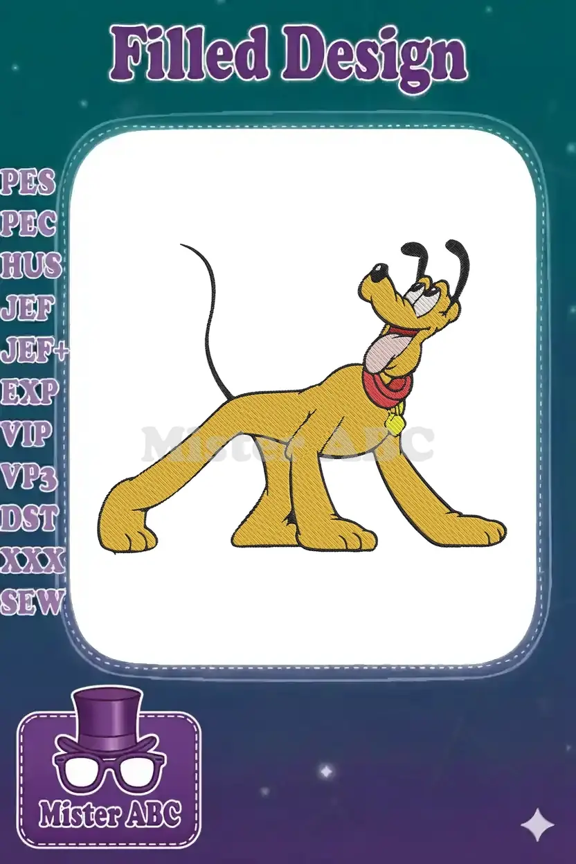 Happy Pluto yellow cartoon dog barking detailed embroidery designs