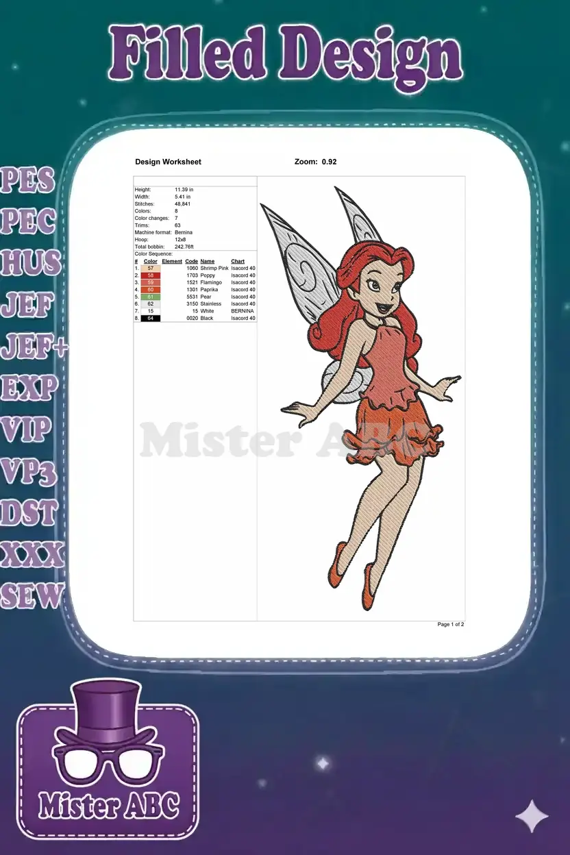 Happy Redhead Fairy Flying Cartoon Embroidery Designs