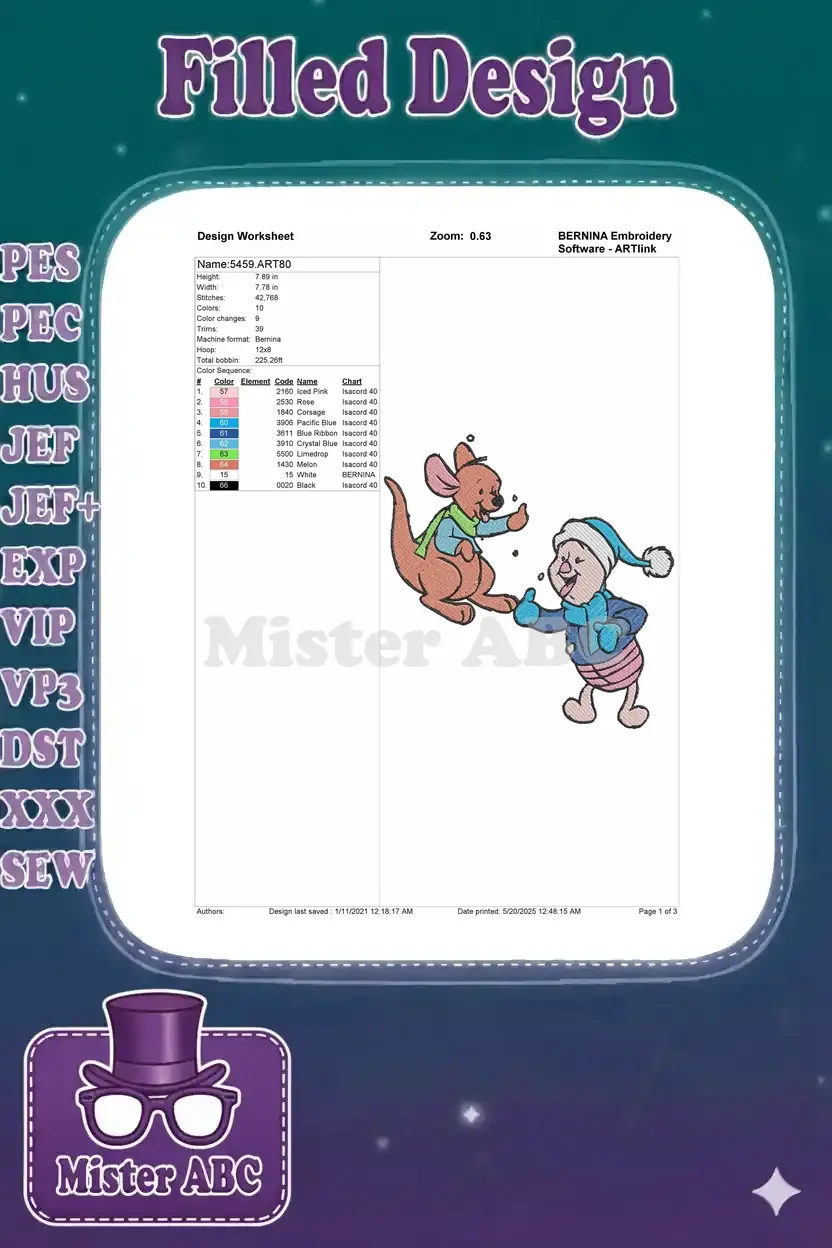 Happy Roo Piglet Winter Scarf Hat Character Embroidery Designs