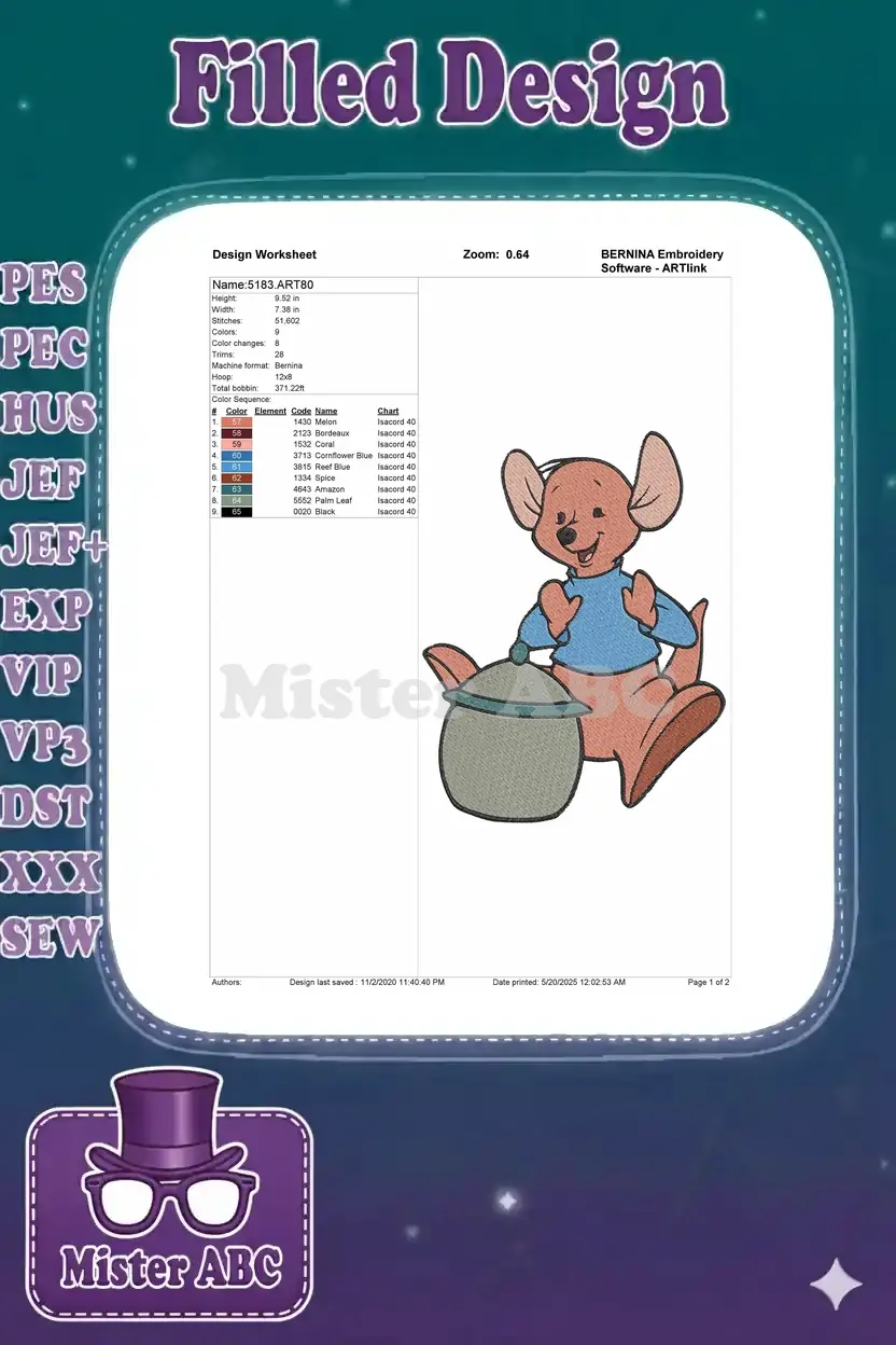 Happy Roo Winnie the Pooh Disney character embroidery designs