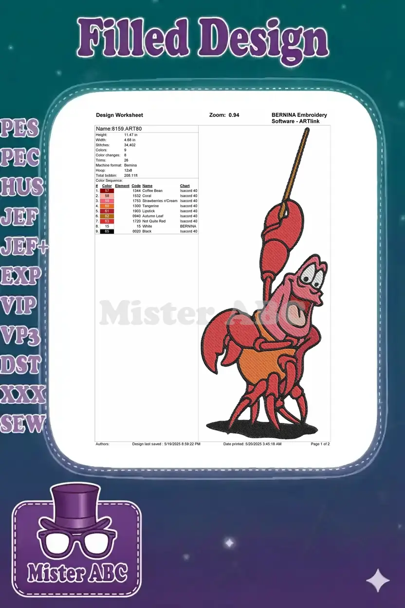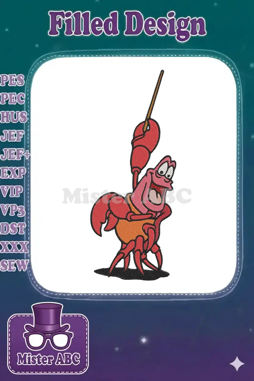 Happy Sebastian the Crab Conductor Disney Embroidery Designs