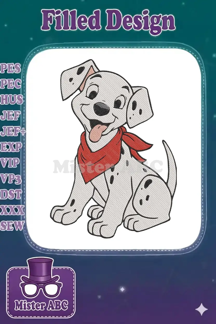 Happy spotted Dalmatian puppy wearing red bandana embroidery designs