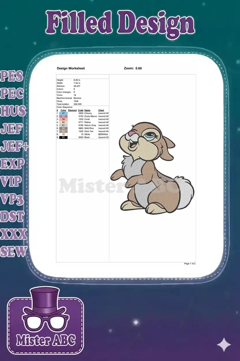 Delightful Thumper embroidery design, perfect for adding a touch of classic Disney charm to any project. A cheerful, high-quality stitch file.