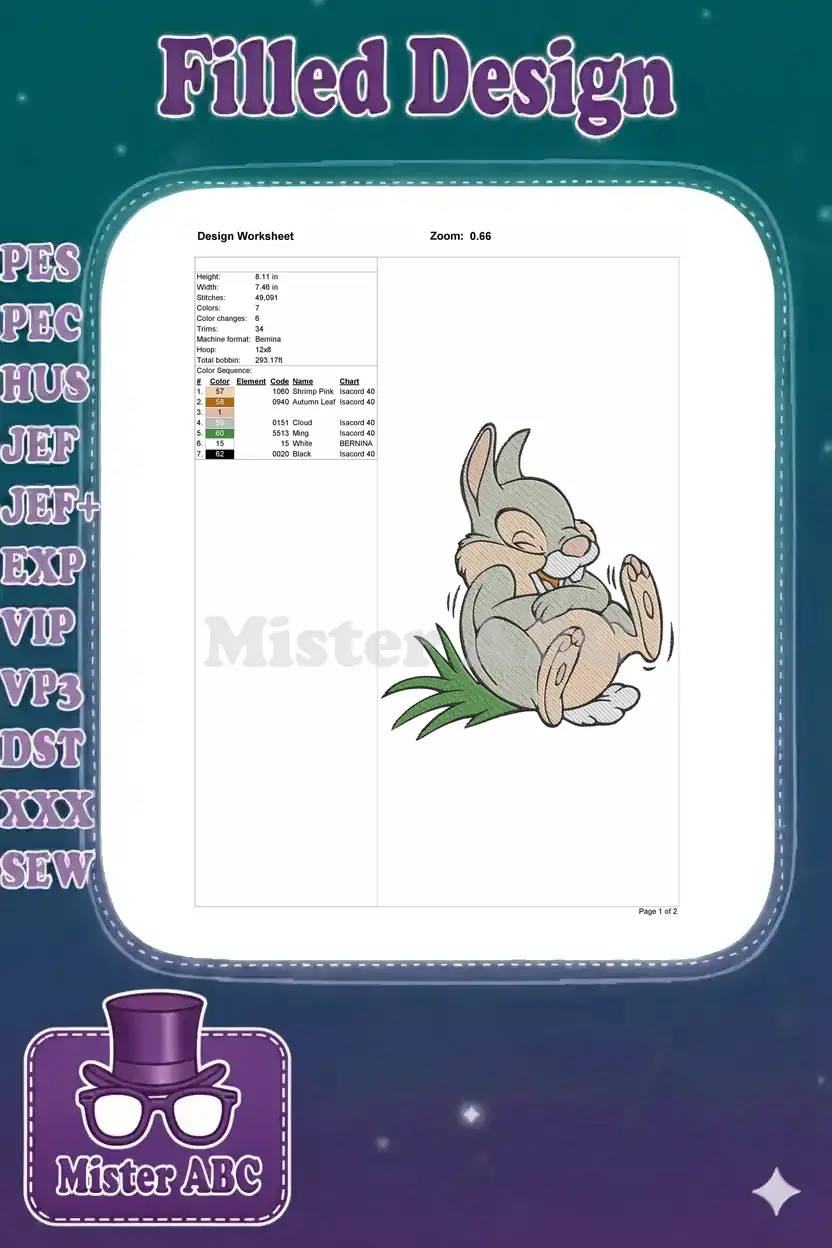 Happy Thumper Rabbit Laughing Cartoon Embroidery Designs