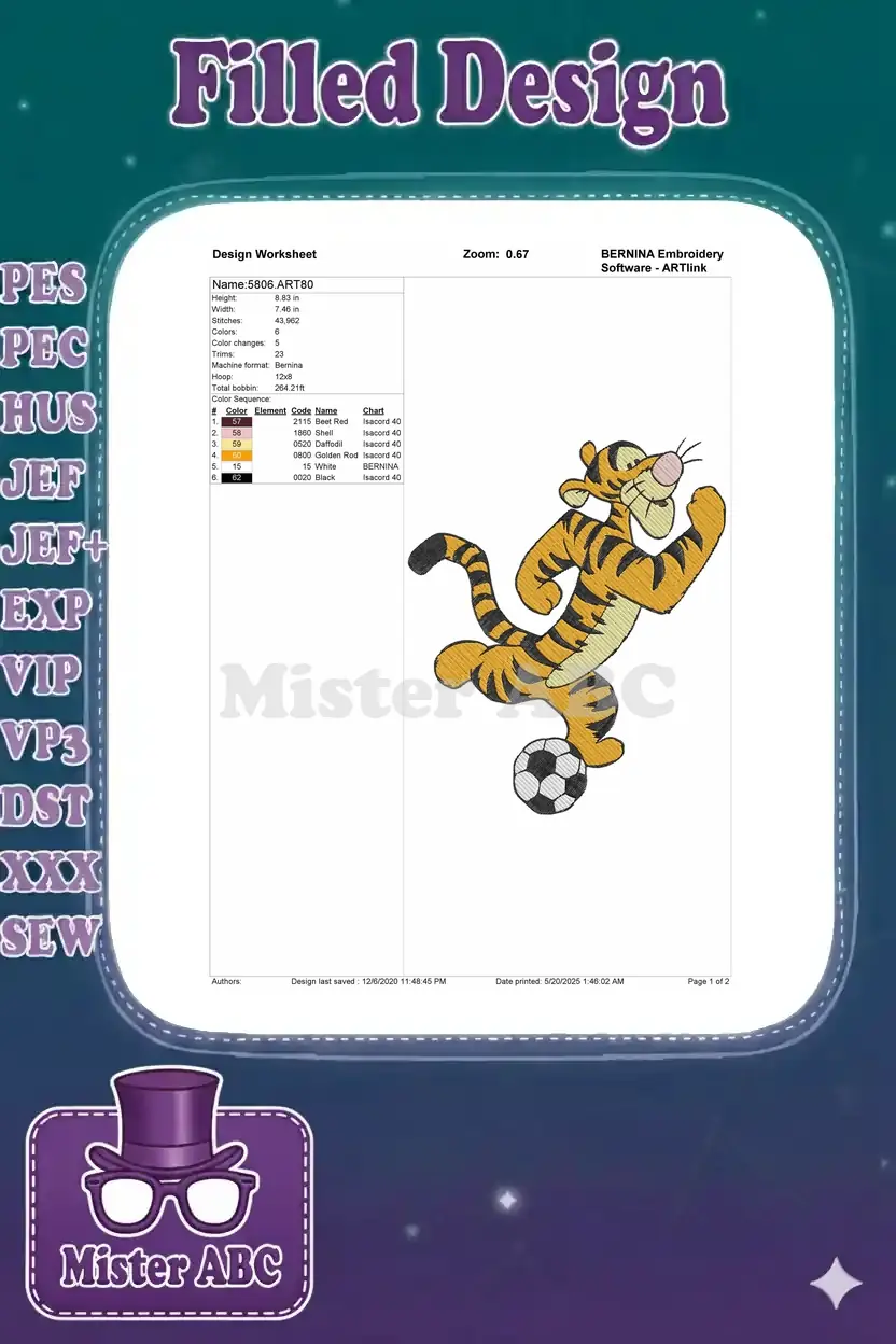 Happy Tigger kicking soccer ball Winnie the Pooh embroidery designs