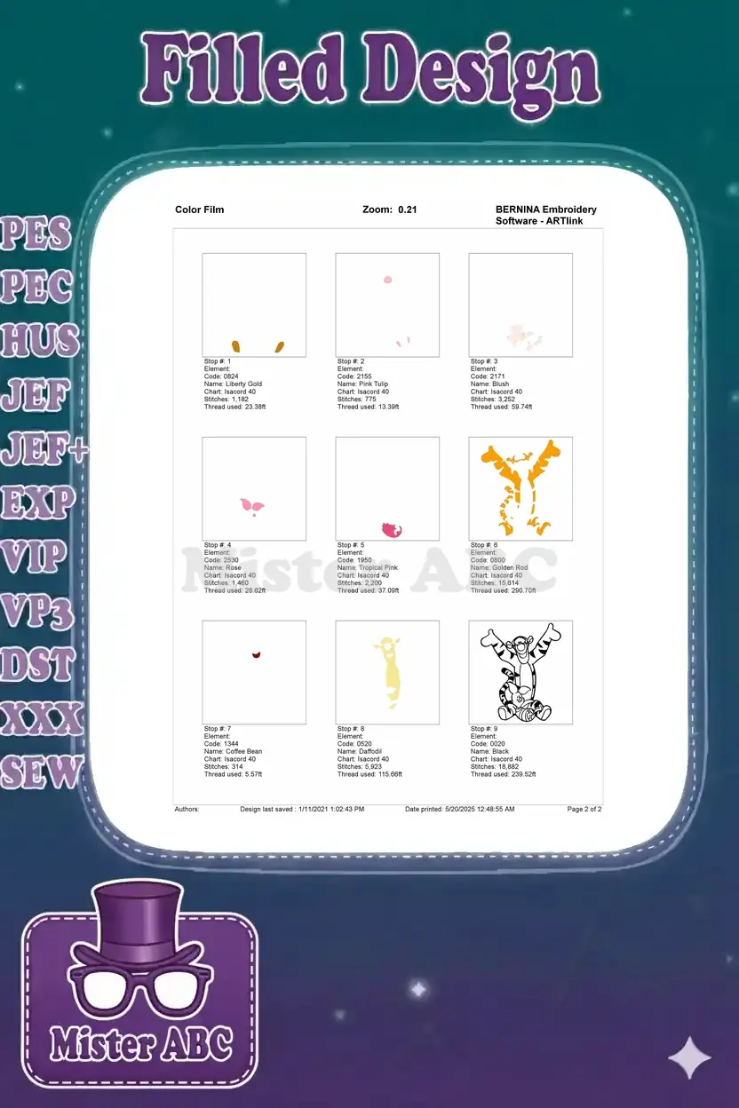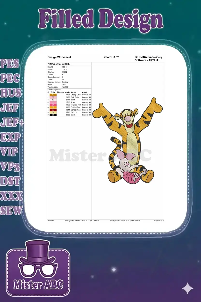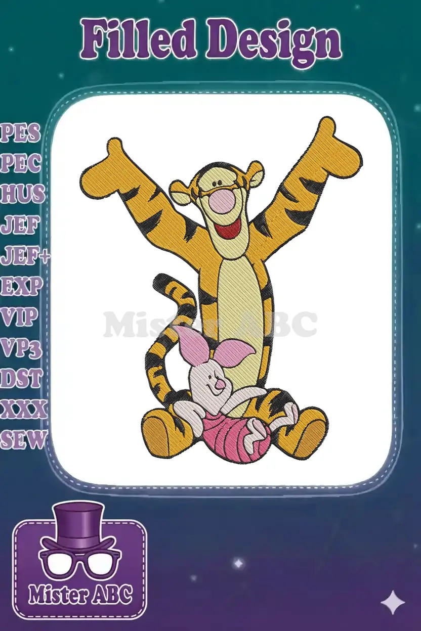 Joyful Tigger and Piglet embroidery design, perfect for adding a touch of classic Winnie the Pooh charm to any project. A delightful, high-quality stitch.