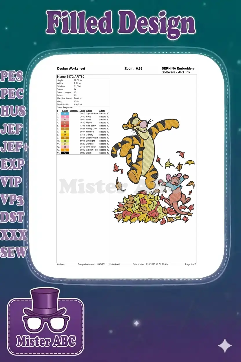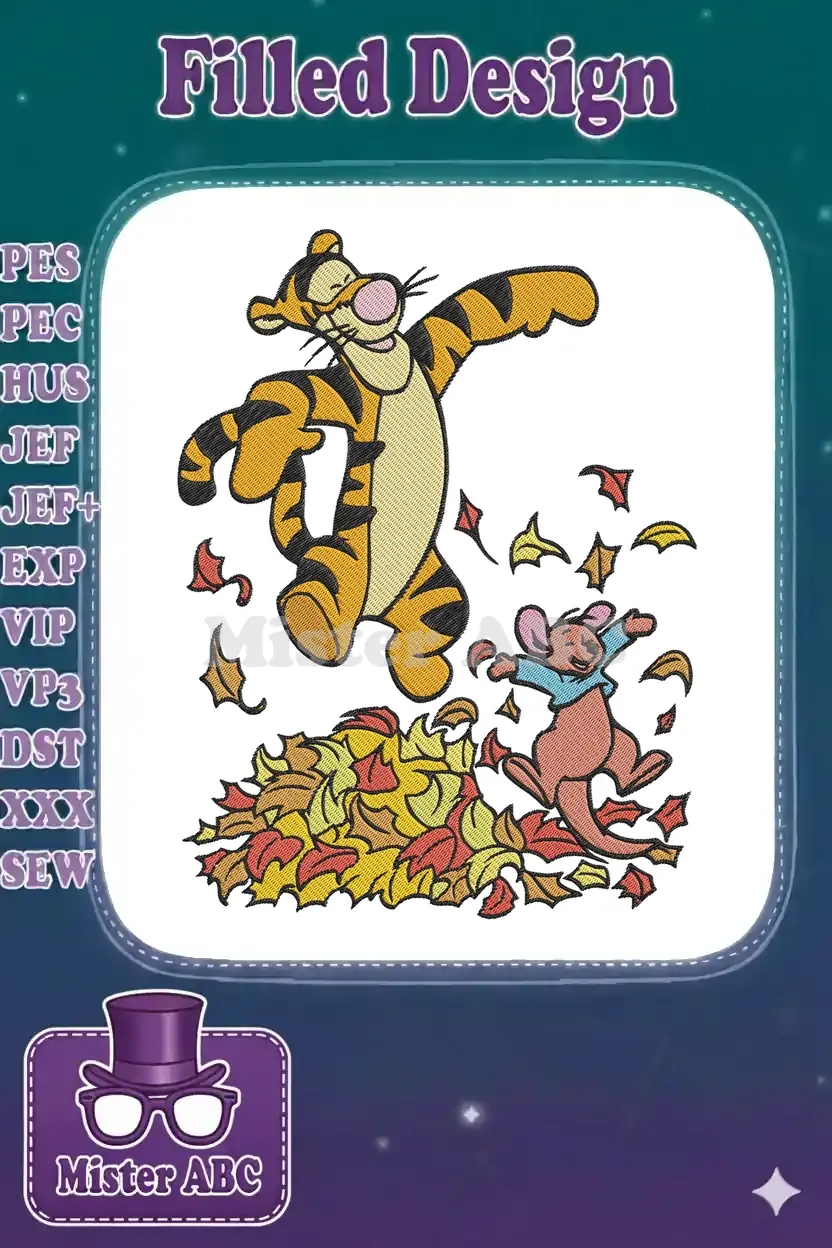 Happy Tigger and Roo playing in fall leaves embroidery designs