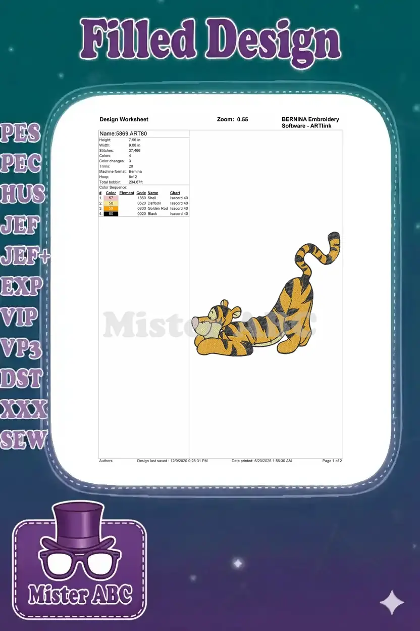 Bring the bouncy fun of Tigger to life with this vibrant embroidery design, perfect for children’s apparel and accessories!