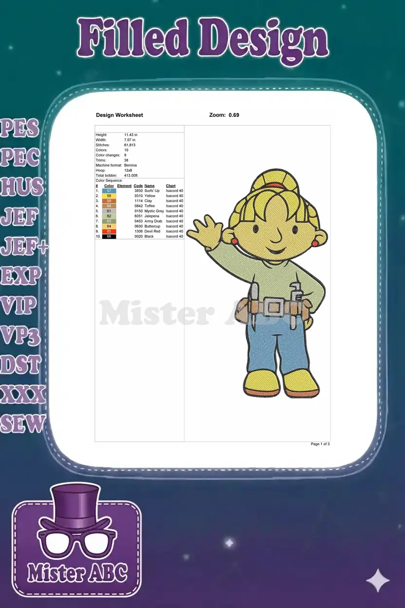 Happy Wendy from Bob the Builder cartoon embroidery designs