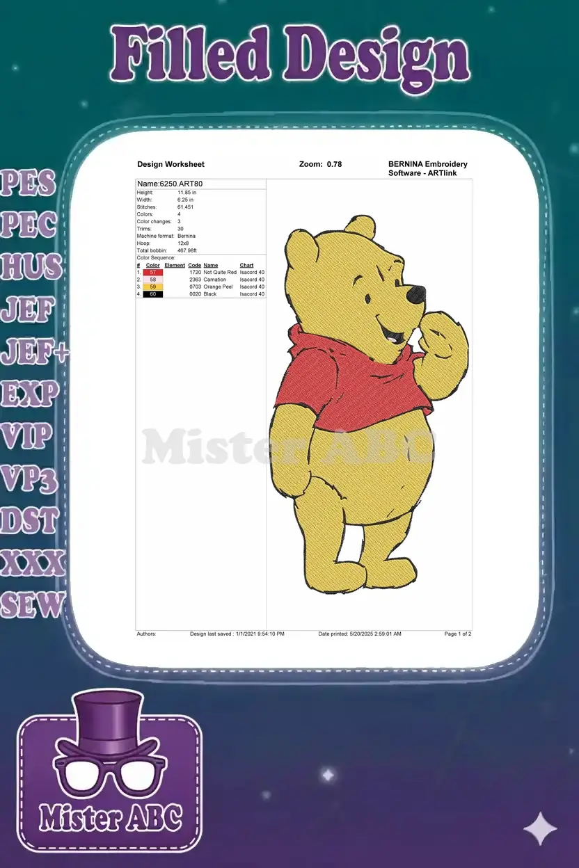Happy Winnie the Pooh bear character embroidery designs for children