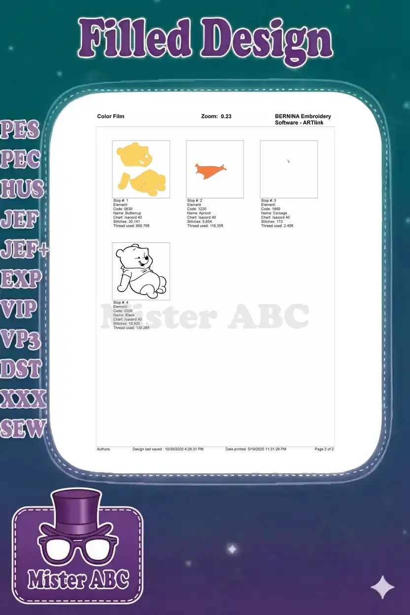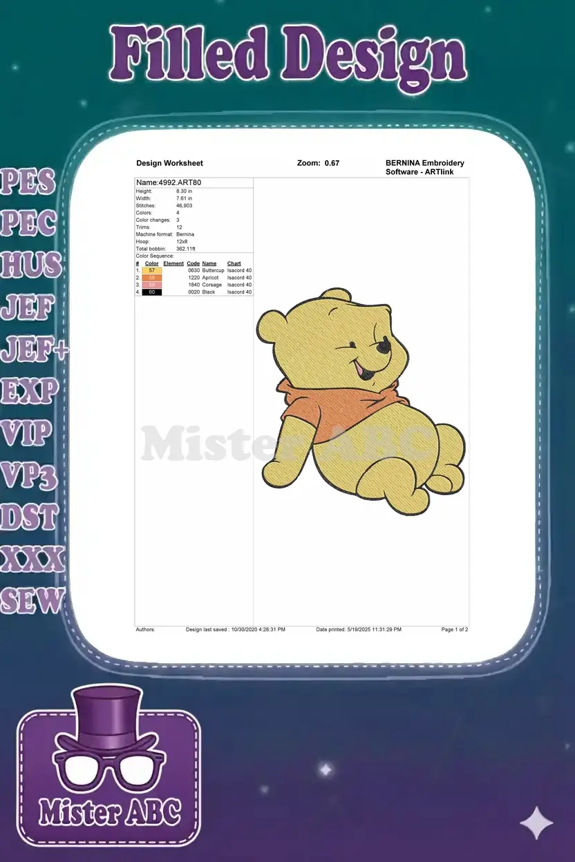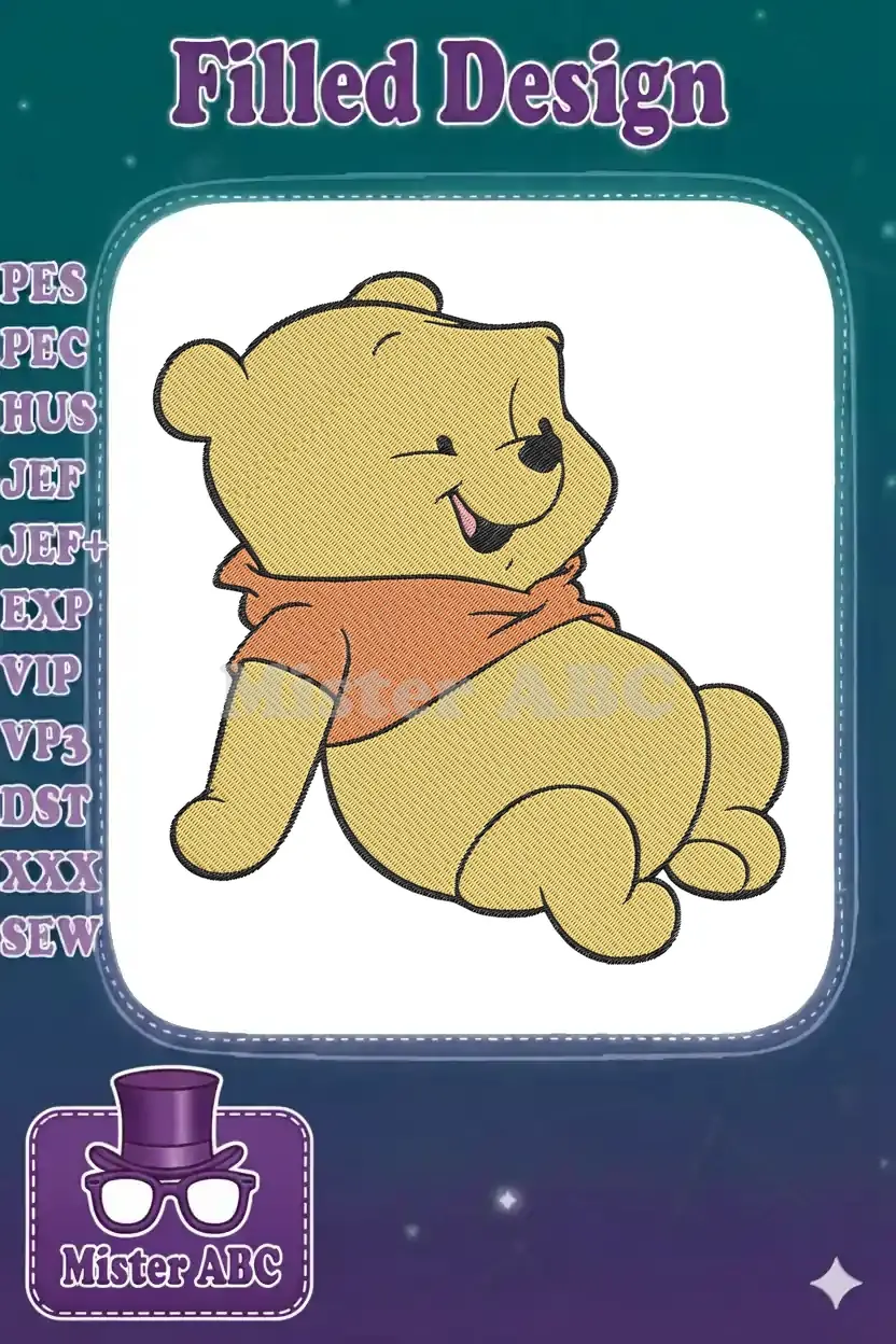 Happy Winnie the Pooh Bear Cartoon Character Embroidery Designs