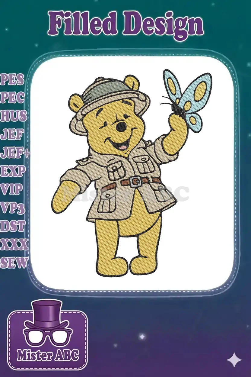 Happy Winnie the Pooh Explorer with Butterfly Embroidery Designs
