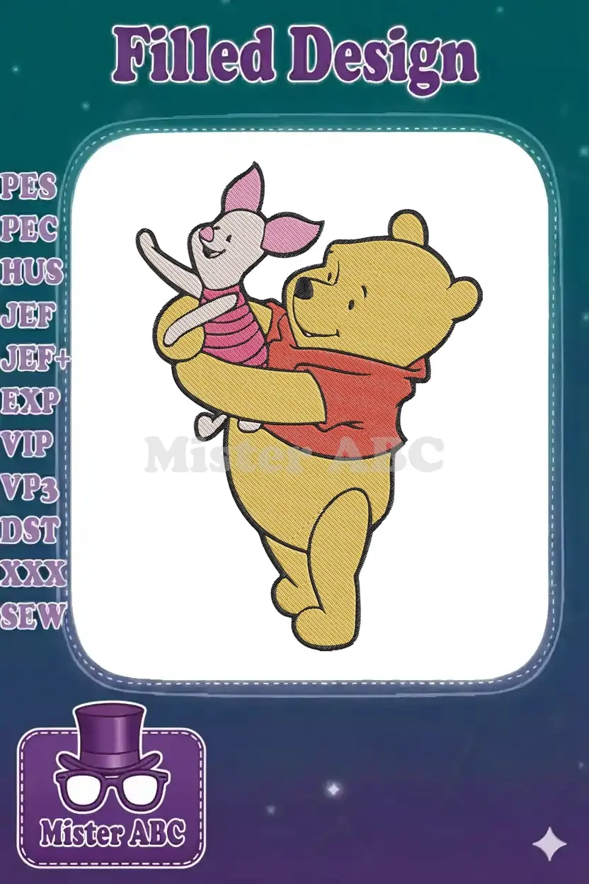 Happy Winnie the Pooh Holding Piglet Friendship Embroidery Designs