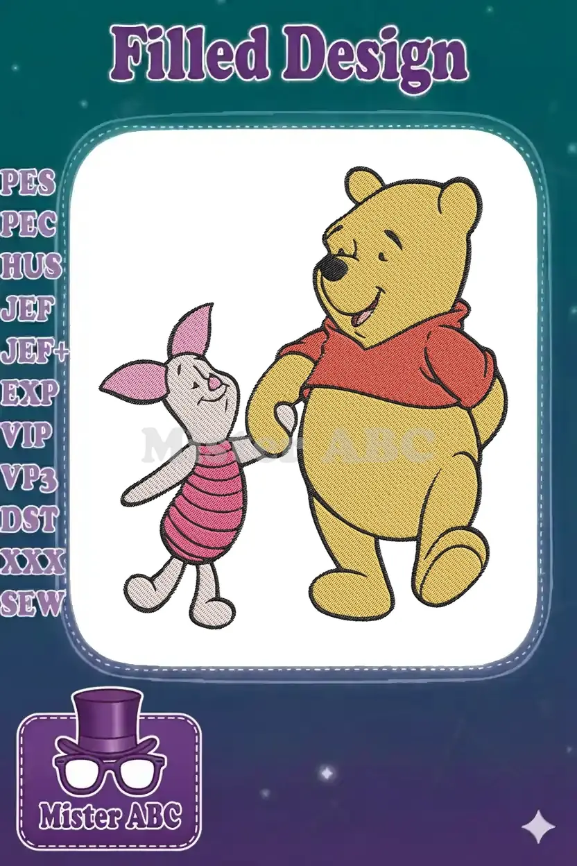 Happy Winnie the Pooh and Piglet holding hands embroidery designs