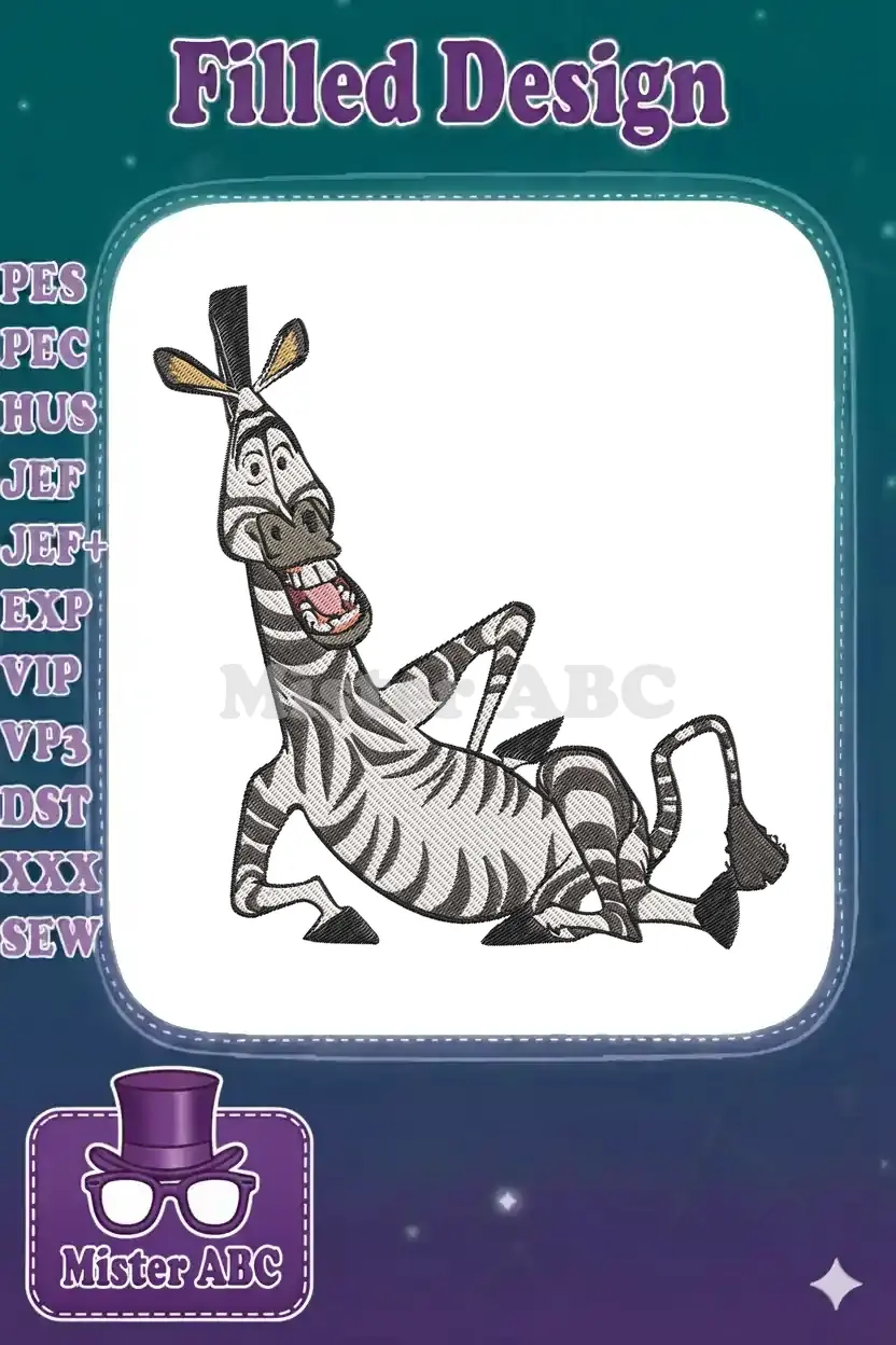 Hilarious Cartoon Zebra Character Lying Down Laughing Embroidery Designs
