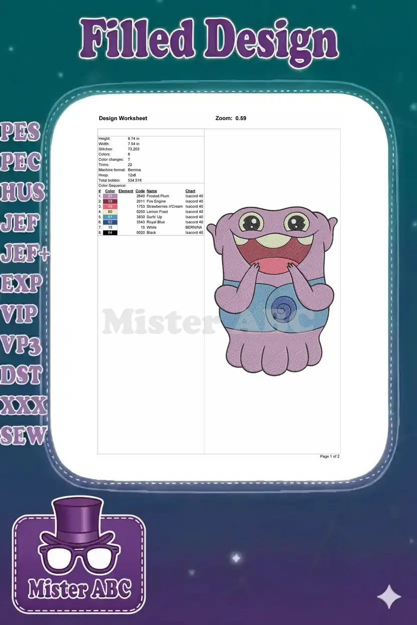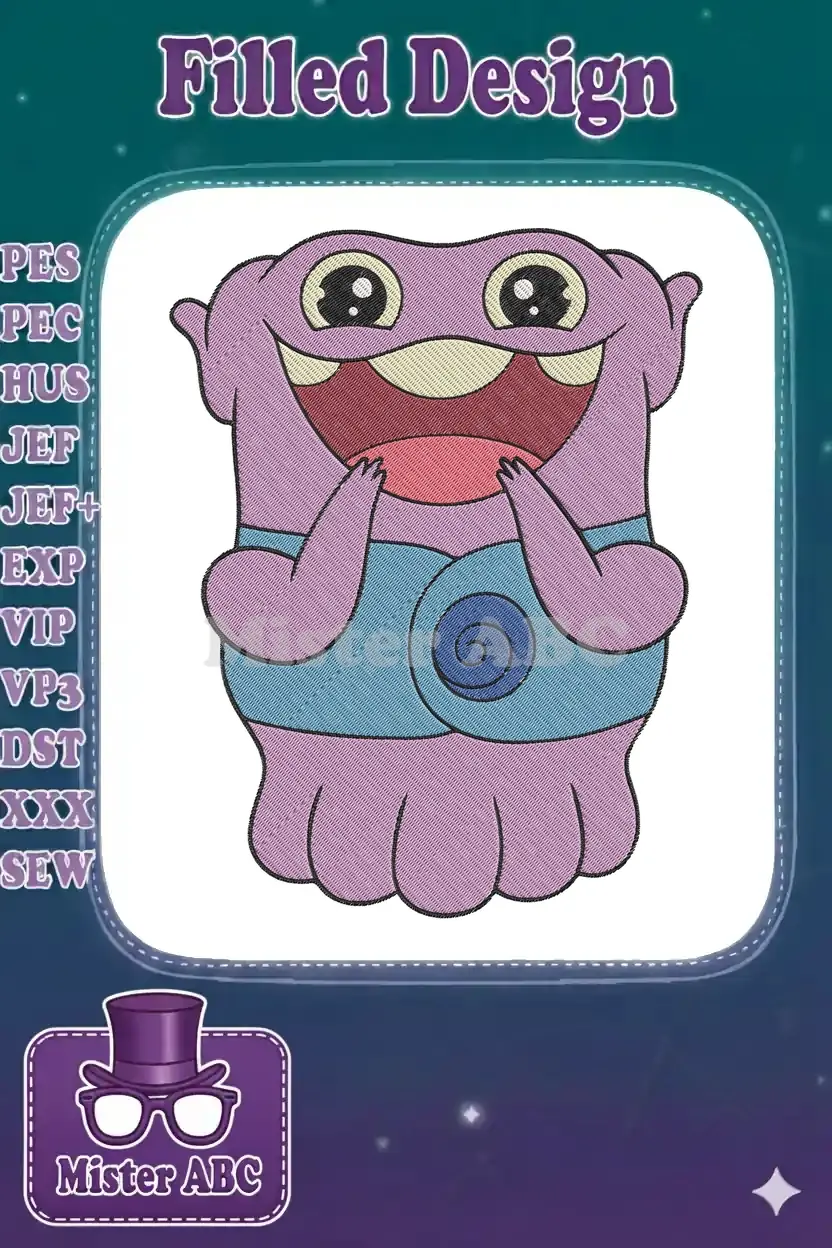 Home movie Oh purple alien smiling character embroidery designs