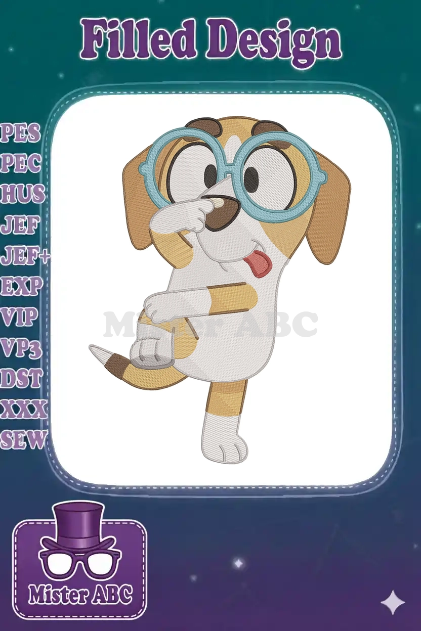 Honey the beagle dancing happily with glasses embroidery designs