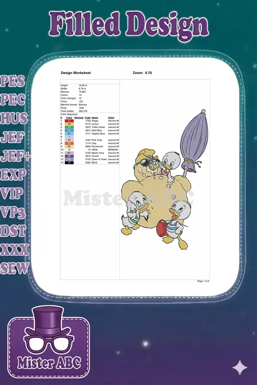 Huey Dewey Louie Disney Ducks Playing Adventurous Fun Embroidery Designs