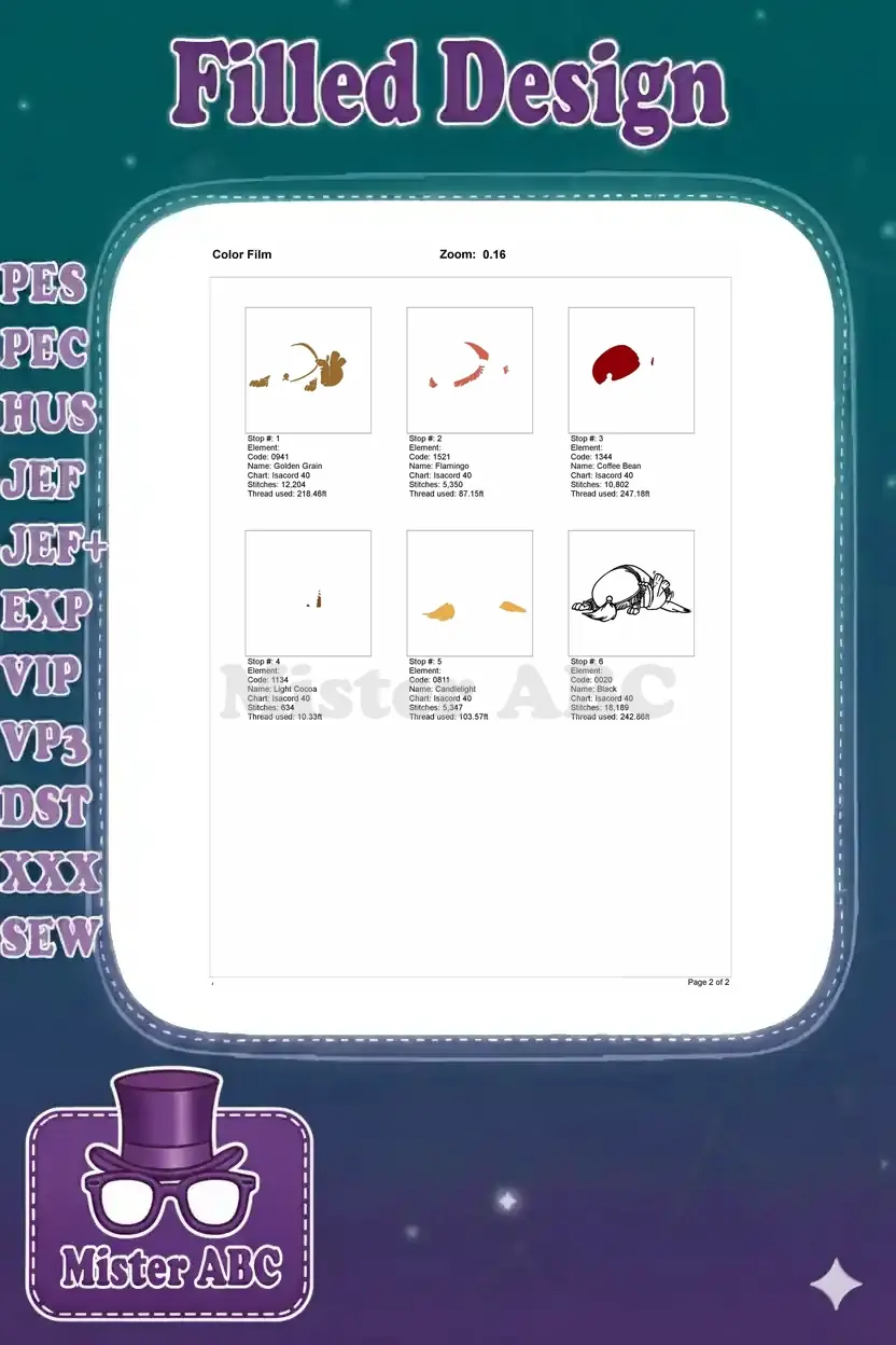 | Stitches | Colors | Thread Changes |