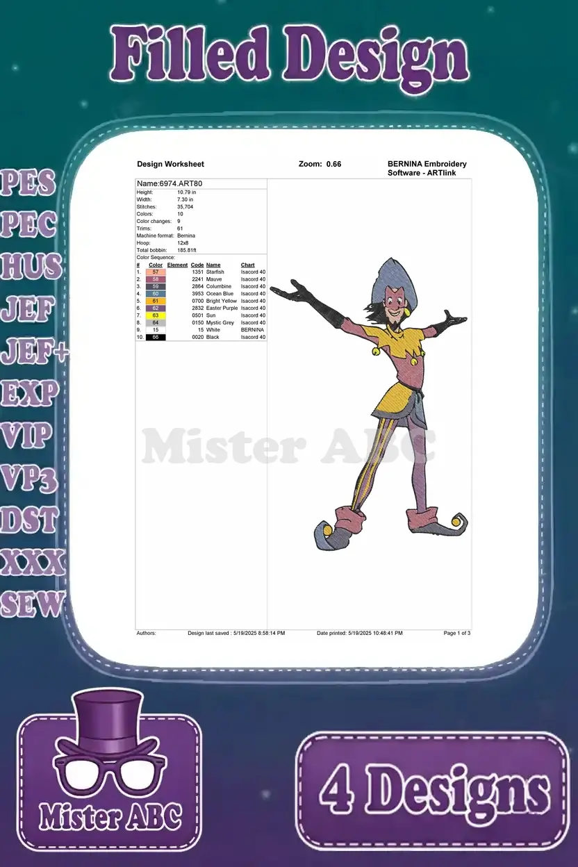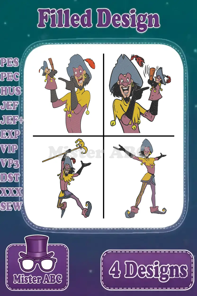 Hunchback Of Notre Dame Clopin Trouillefou Various Jester And Storyteller Poses – Filled Embroidery Design