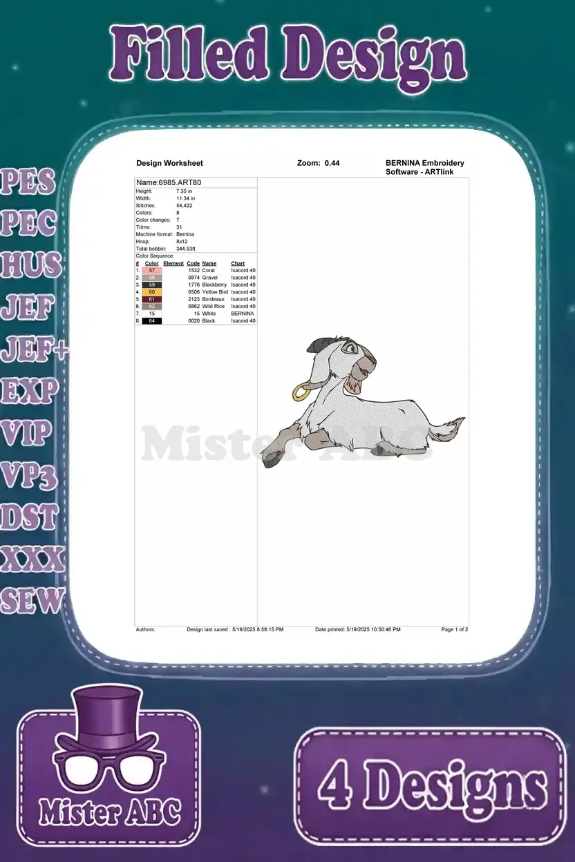 Hunchback Of Notre Dame Djali Goat Friend Various Standing And Jumping Actions – Filled Embroidery Design