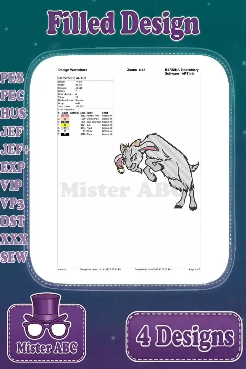 Bring the spirited charm of a beloved satyr-like goat character to life with this dynamic 4-design embroidery bundle! Perfect for fans.