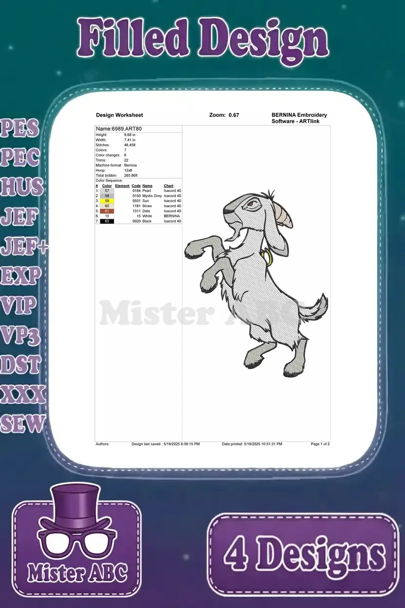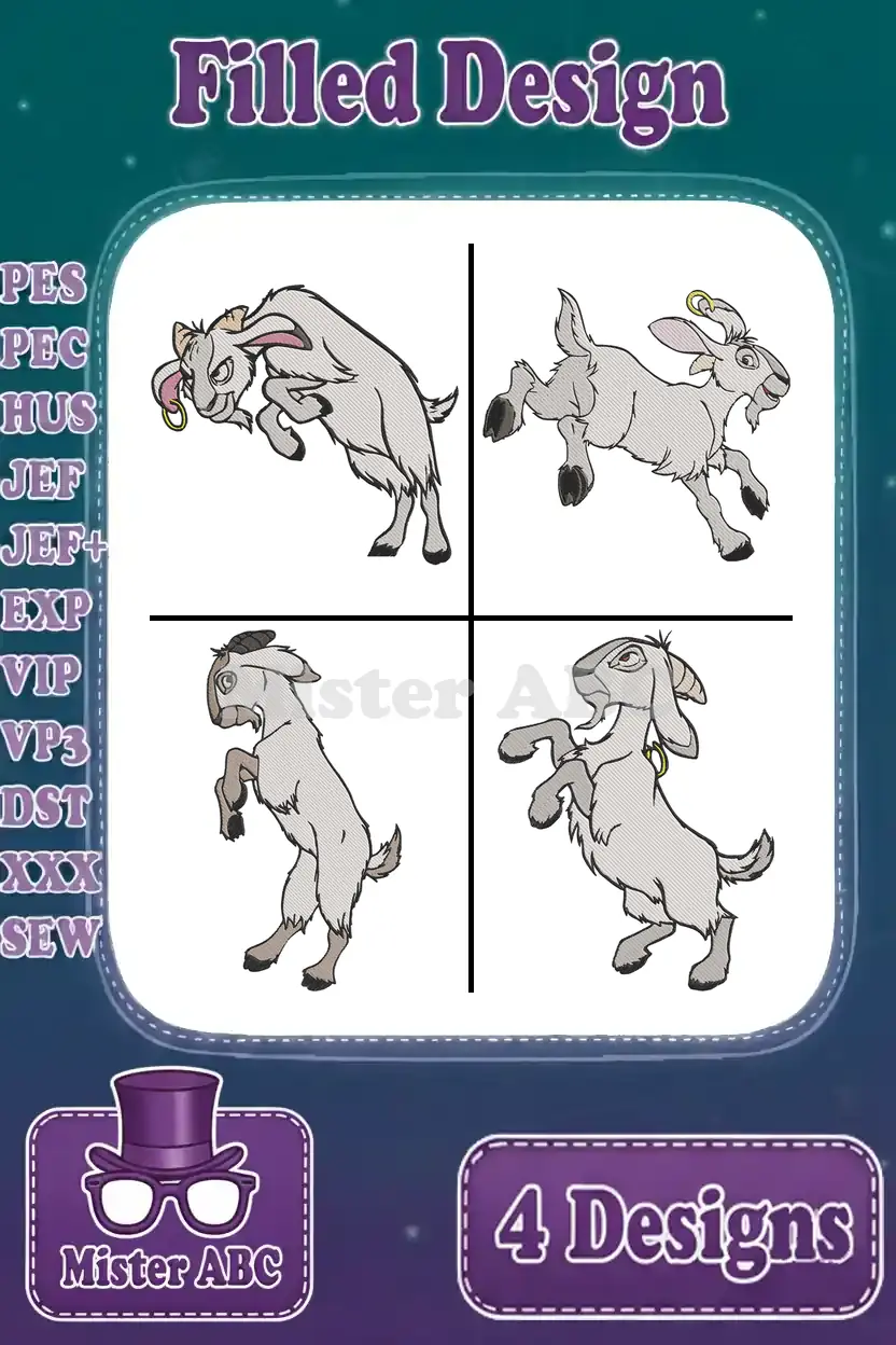Hunchback Of Notre Dame Djali Goat Various Poses Baby Goat And Standing Views – Filled Embroidery Design