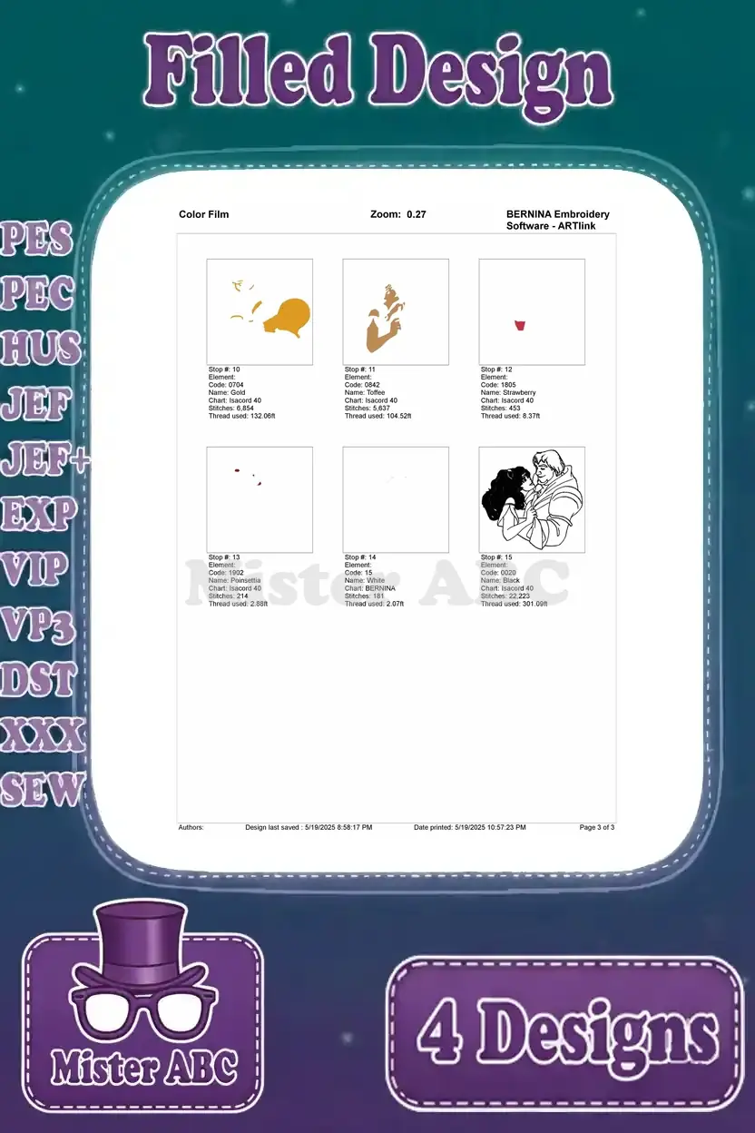 Hunchback Of Notre Dame Esmeralda And Captain Phoebus Romantic Couple Interactions – Filled Embroidery Design