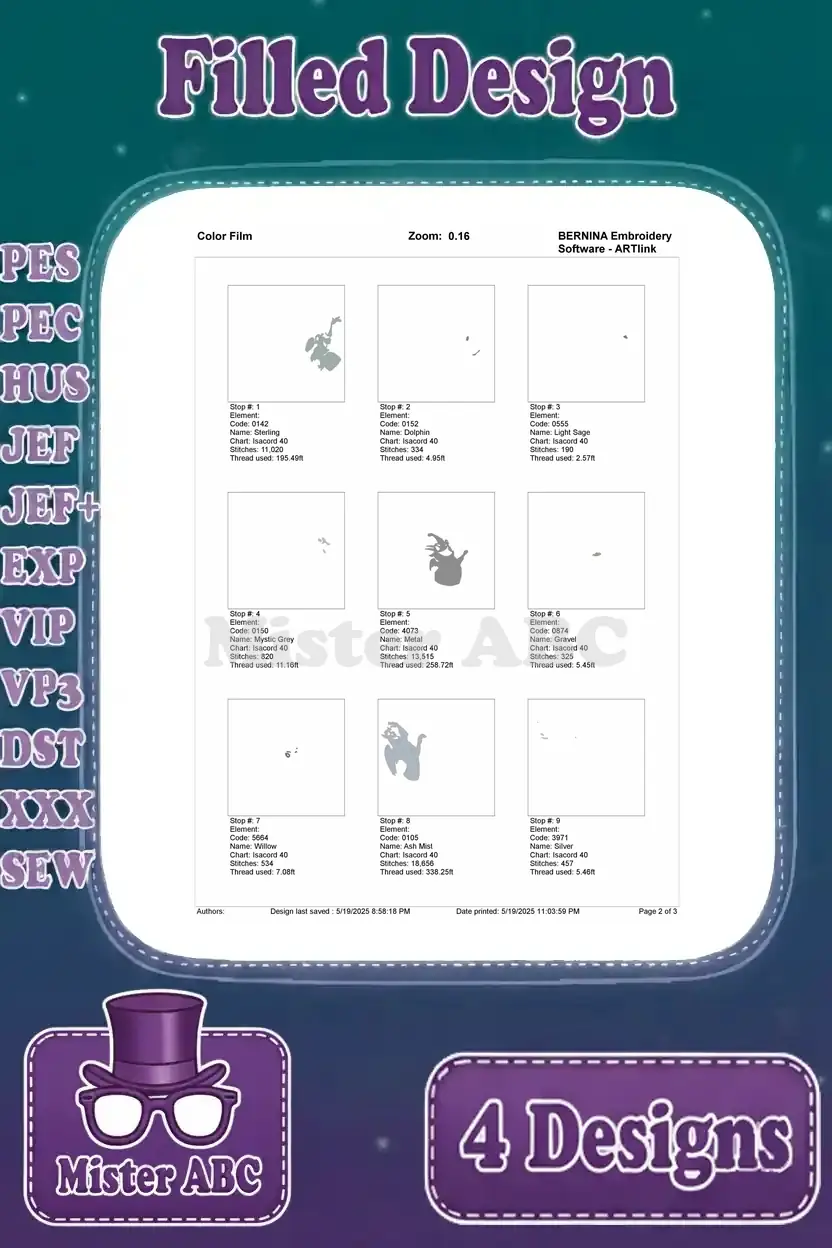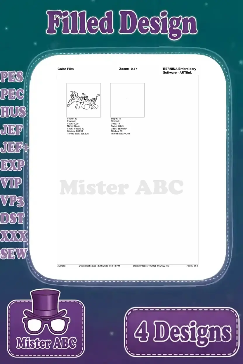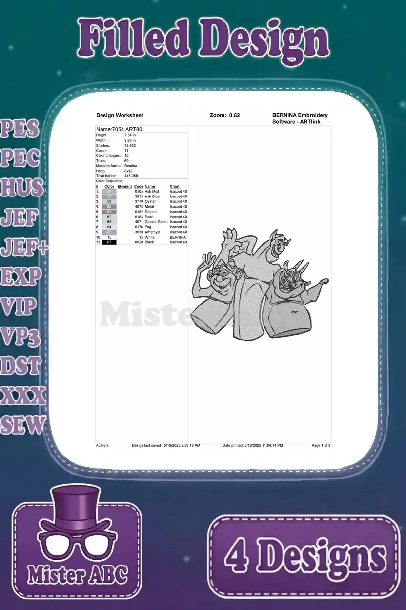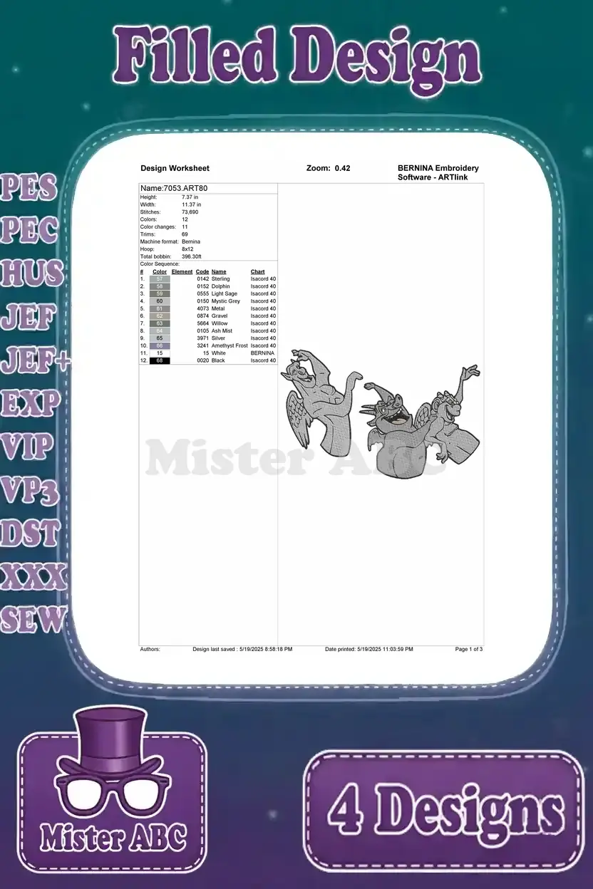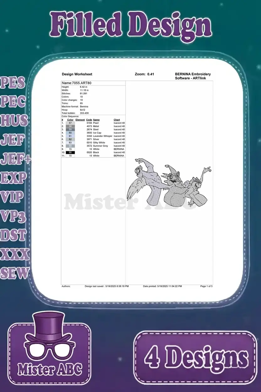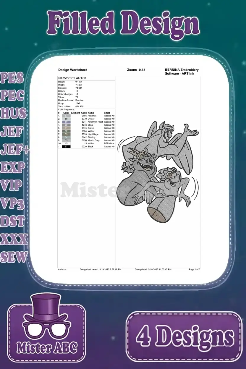 Hunchback Of Notre Dame Gargoyles Victor Hugo Laverne Group And Individual Poses - Filled Embroidery Design - 7052